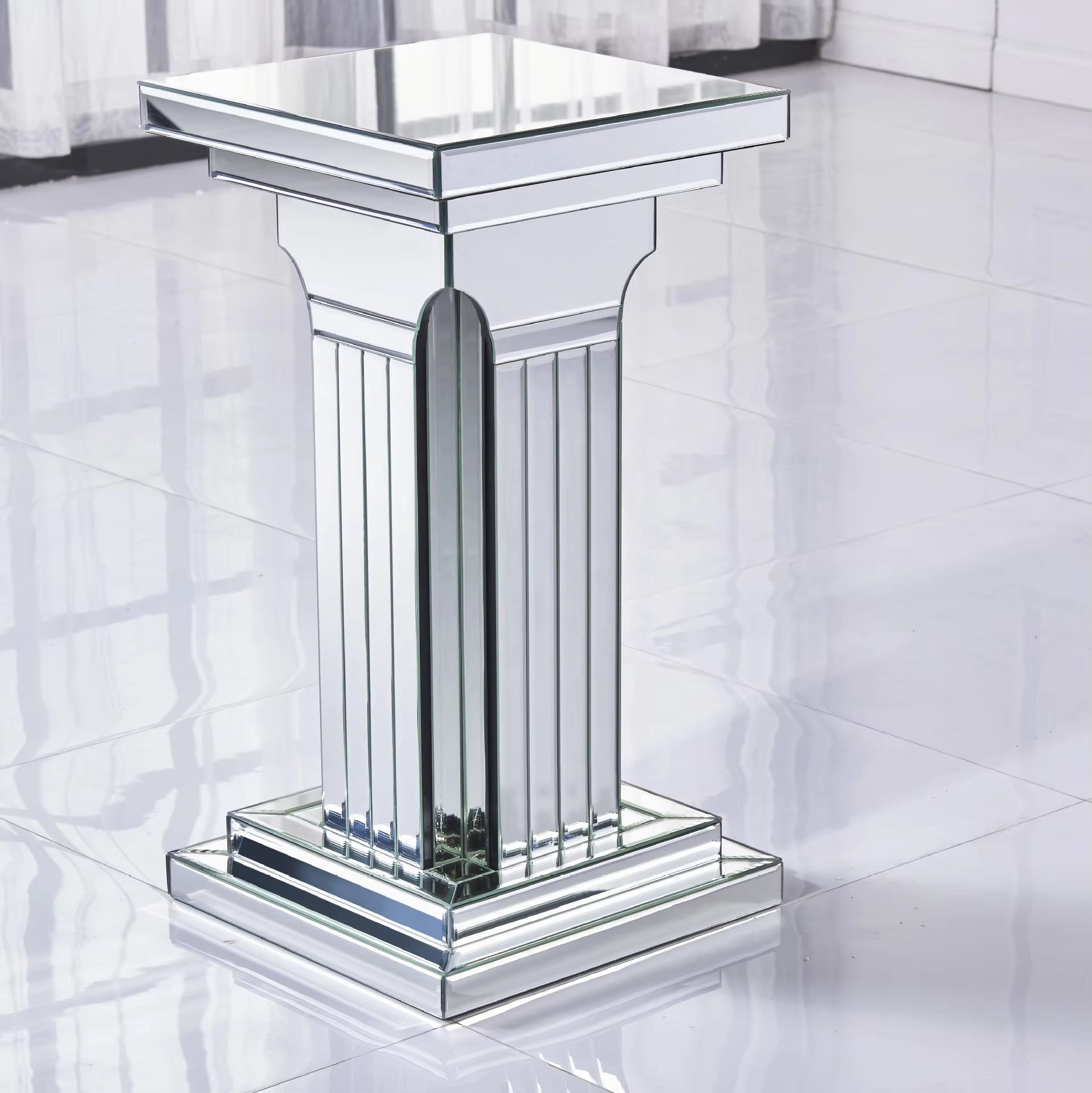 Silver mirrored display pedestal